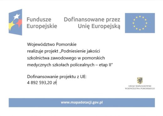 Projekt: W ramach Europejskiego Funduszu Strukturalnego (EFS): „Podniesienie jakości szkolnictwa zawodowego pomorskich medycznych szkół policealnych – etap II”